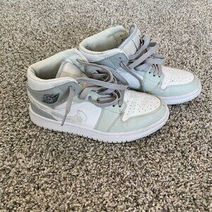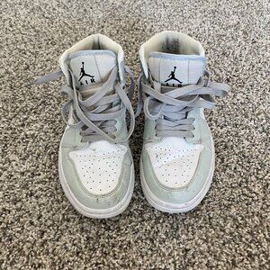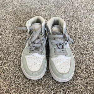Worn nike jordan mid sneakers. Grey Camo color. Size 4.5 (euro 28). Bought brand new, but reselling at a very discounted rate.