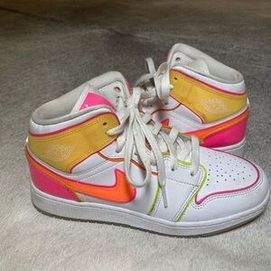 Nike Jordan 1 Women's Sneakers White Neon Pink Mid Edge Glow Size 5.5 Y 7 Womens