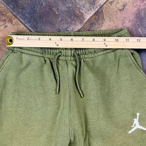 Nike Jordan Essentials Jumpman Fleece Olive Sweatpants Large (12-13 years). There is a spot on the pants. Please see photos. Measurements in photos. In good, pre-loved (used) condition.