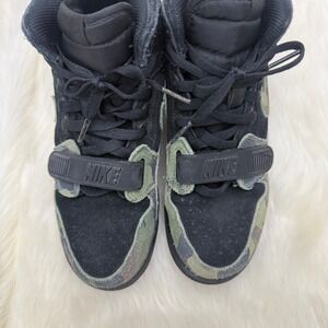 Keywords: Nike, Jordan, Max Aura 3, Camo, High Top, Sneakers, Athletic Shoes, Youth, Kids, Black, Green, Streetwear, Comfortable, Fashion