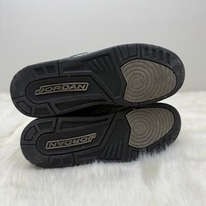 A stylish and functional pair of athletic shoes. These high-top sneakers feature a distinctive camouflage pattern, complemented by black suede accents and the iconic Jordan logo. The design includes a midfoot strap with Nike branding, providing a secure and adjustable fit. The durable rubber outsole ensures excellent traction, while the cushioned insole offers comfort for all-day wear. Perfect for casual outings, sports activities, or adding an edgy touch to your everyday style. Soles were missing when I bought them, easily replaced with generic ones. No box to include.