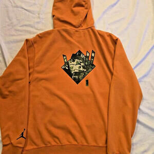 Elevate your streetwear game with this Nike Jordan Men's Zion Dri Fit Fleece Pullover Hoodie in size M and bold orange colorway. Made with high-quality fleece fabric, this hoodie is perfect for staying warm and stylish at the same time. The pullover style and hood make it easy to wear, while the Dri-Fit technology wicks away sweat and moisture, keeping you comfortable and dry throughout the day.