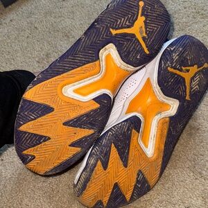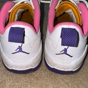 Stylish and comfortable mens athletic shoes in white pink gold and purple. Perfect for active play and everyday wear.