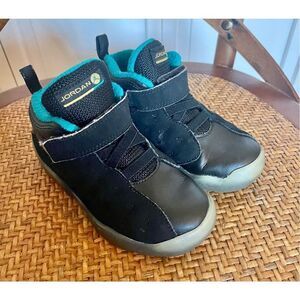 Boys Leather Velcro closure high top Nike Jordan’s. Size 9 toddler boy. Very good condition!
