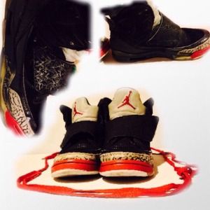 Son Of Mars 🏀 Nike Jordans. Used youth size 4.5. Please look at pictures . My son takes care of his shoes as far as keeping them clean and he always wears socks . He does play BB and is very active , they have normal wear and tear . No visible rip , tears or holes. Alot of life lefr in them Varsity red. Cement grey Gray. Black. And white. With red shoelaces. No returns or exchanges Thank you for viewing