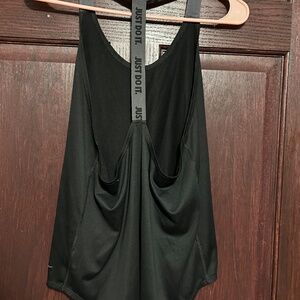 The Nike Dri-Fit training tank top features lightweight moisture wicking material and a racer back design to keep you dry and comfortable. It is a women's size medium.