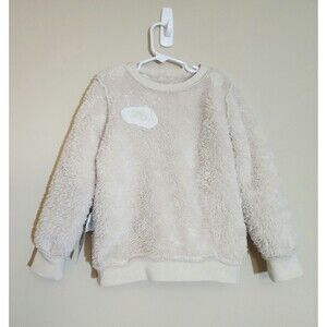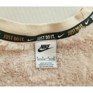 Nike Just Do It Kids Plush Pullover Sweatshirt Size 5-6 Beige Crew Neck Swoosh