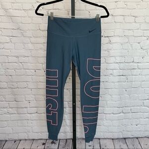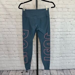 Gunmetal blue with pink Just Do It. Jogger style leggings