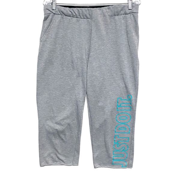 Nike Just Do It Spell Out Capri Pants Dri Fit Joggers Gray Blue Womens Large L