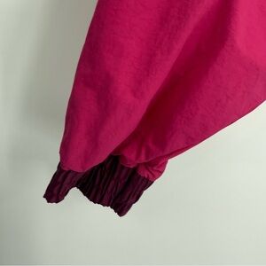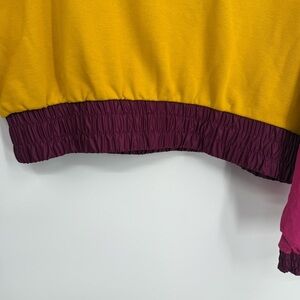 Nike Just Do It Swoosh Retro Nylon Terry Fleece Sweatshirt Size M DM6321-743. Cotton polyester with nylon trim. Elastic bottom hem. Pullover. Just do it front graphic with pink camo Nike. Dolman sleeves. Oversized fit. Length 21. Colorblock gold pink purple. Very good preowned condition.