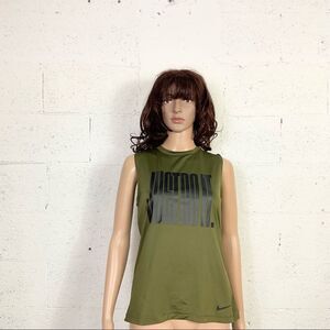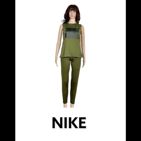 Nike Just Do It Army Green Black Muscle Tank Leggings Matching Set Women's Size Medium