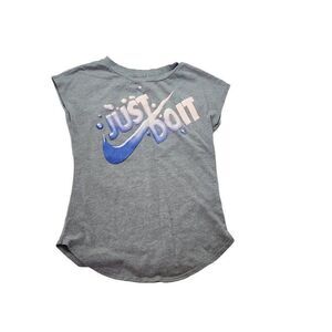 Nike Just Do It Sleeveless T-Shirt Girls Size Medium Grey. No rips stains or tears detected throughout the garment. See photos for condition and measurements. All measurements taken while laying flat.
