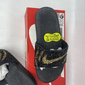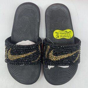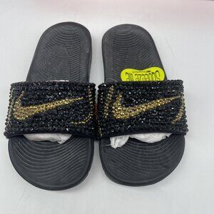 Nike KAWA Slide Black Metallic Gold Rhinestone Bling Out Kids 13 MODIFIED