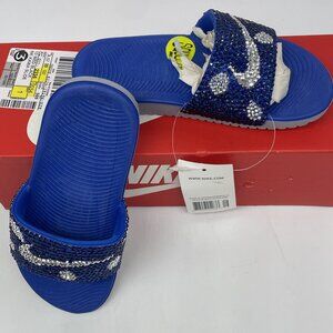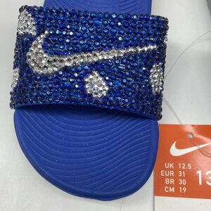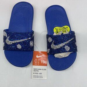 Nike KAWA Slide Blue Silver Grey Bling Rhinestones Kids 13c NWB MODIFIED