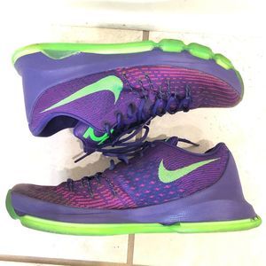 In 2014, Kevin Durant received his first MVP award, naturally Nike released a colorway to celebrate this achievement. The KD 8 'Suit' boasts a Court Purple Flyweave upper with Vivid Purple details on the toe box and Flywire cables for support. The low also sports a padded tongue for added comfort, a full-length Zoom Air unit in the Phylon midsole for responsive cushioning, and a foam heel counter. To make the shoe pop, Green Strike accents can be found on the outsole, tongue, and Swoosh.