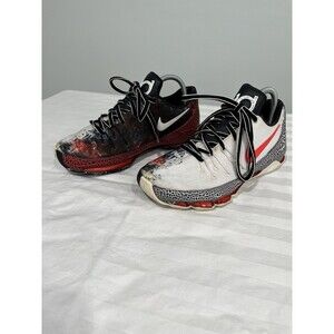 The Nike KD 8 VIII Kevin Durant NBA Christmas Edition Shoes Sneakers in size 7Y are a stylish and colorful option for young athletes. With a low top design and tie closure, these sneakers feature a standard shoe width for comfortable wear during activities like walking, school, or basketball. The multicolor design, American theme, and Nike brand make them a trendy choice for kids who want to follow in the footsteps of basketball star Kevin Durant.
