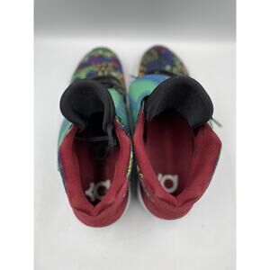 The Nike KD NRG Ron English 11 2 Ky-D Men's Size 11 Blue Basketball Shoes Sneakers are a stylish and performance-driven option for athletes and casual wearers alike. These shoes feature a mid-top shoe shaft style with a lace-up closure for a secure fit. The outsole is made of rubber, providing durability and traction on various terrains. With features like arch support, cushioning, and breathability, these sneakers offer comfort and adjustability for all-day wear. The blue green multi-color design and unique character make them a standout choice for those looking for a fun and modern footwear option.