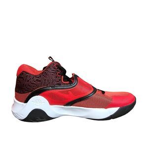 Elevate your game with these Nike KD Trey 5 X basketball sneakers. These shoes are designed with a mid-top shoe shaft style and lace-up closure for a secure fit during games or activities. The shoes come in a solid red color with accents of white and black, and feature the Nike KD product line theme of sports.