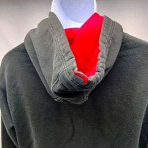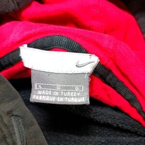 Nike Kangaroo Hoodie Embroidered SWOOSH and Logo Front Black/Red Men's Large. Logo on back of hood also.
