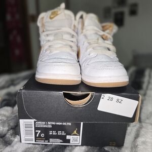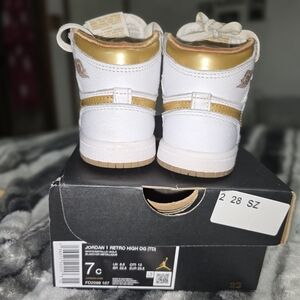Nike Kids Air Jordan 1 Retro High OG - White and Gold Size 7c