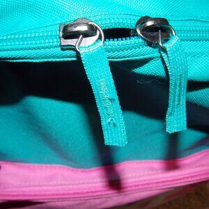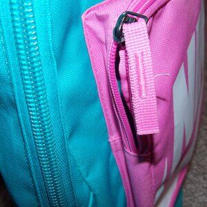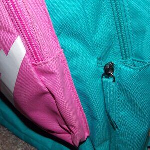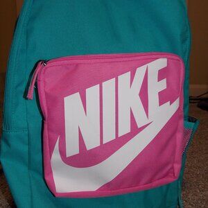Nike Classic Kids' Backpack is perfect for school or play. With a retro style and solid pattern, it features a zip closure and is made of 100% polyester material. The backpack is medium-sized and comes in a turquoise blue and pink color combination, making it perfect for girls who love the color blue.