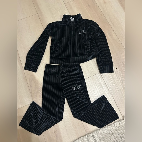 Stylish Nike kids matching set. Black with white stripes. Comfortable and trendy.