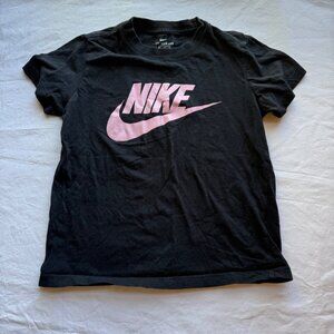 Comfortable and stylish, these black Nike t-shirts feature a bold pink logo and graphic designs. Ideal for casual wear and active days. Gently used. Nike girls shirts size small. Smoke free home.