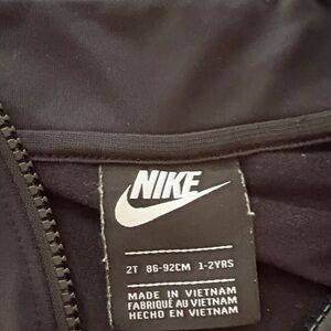 Nike kids jacket with a sleek black and gray design. Features a full zip and front pockets. Ideal for everyday wear.