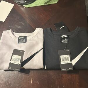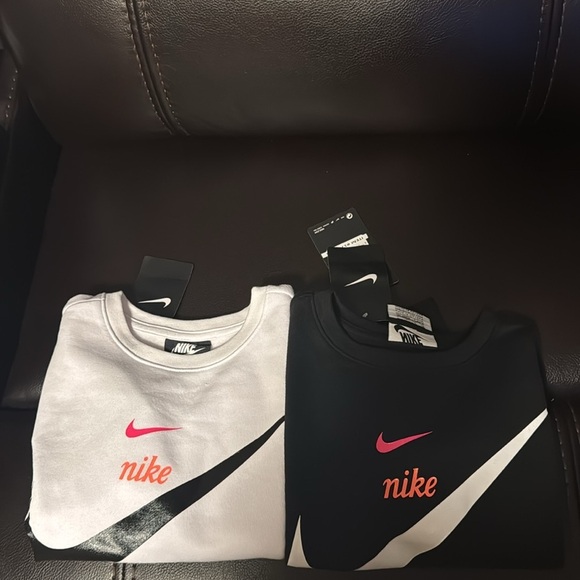 This Nike kids sweatshirt in black and white features the iconic logo design. Perfect for casual wear, it offers comfort and style for your little one.