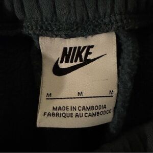 Nike Kids Club Fleece Dark Gray Green Solo Swoosh Open Hem Sweatpants Medium
