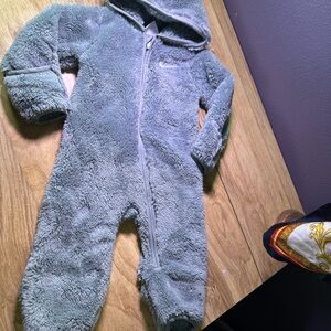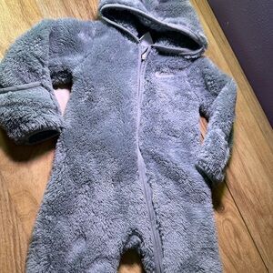 Cozy fuzzy set with hood. Full zip closure. Soft and warm material.