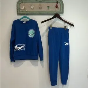 Nike Kids Graphic Art Blue Sweat suit Sweatpants Crewneck play Set 7
