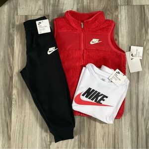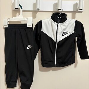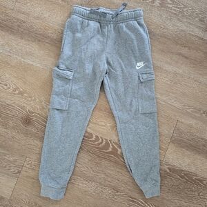 Nike gray set with zip hoodie and cargo joggers. Ideal for play and relaxation. Nike logo on both pieces. the jacket is size medium for a comfortable fit and pants are size small. gently pre worn