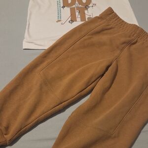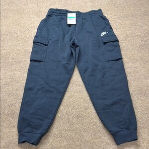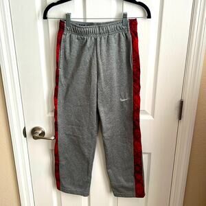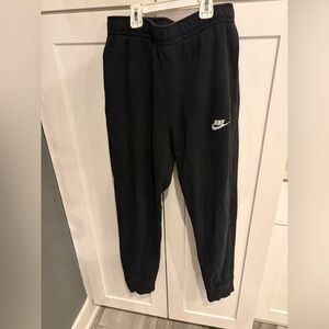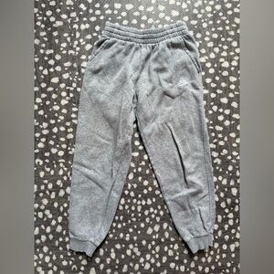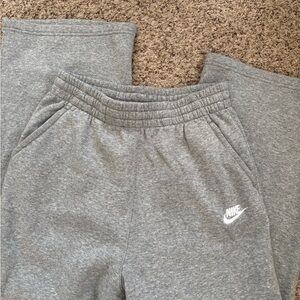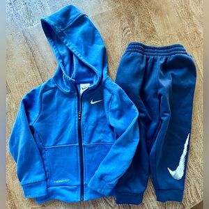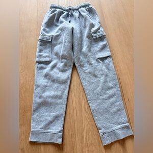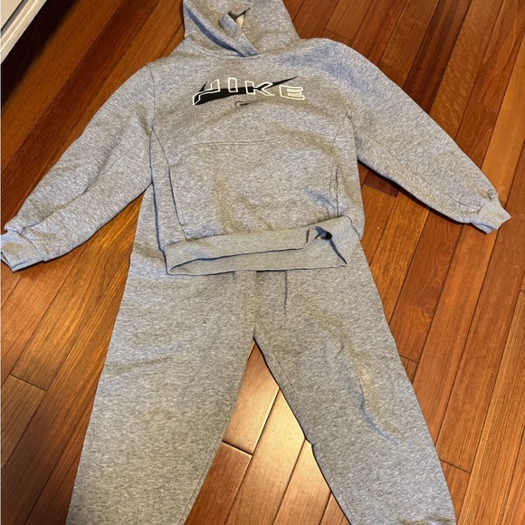 Cozy gray sweatpants and hoodie set. Ideal for active kids. Features iconic Nike logo.