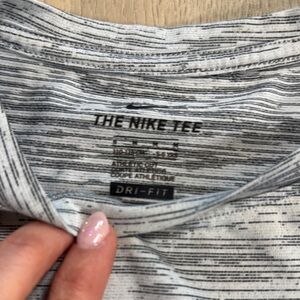 Girls Nike dri-fit tee, athletic cut. Pink Nike logo on the front has a little bit of glitter in it. Excellent condition, no flaws.