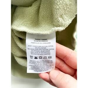 Lighting is off in some photos. Most accurate color is in photo 3. Light green with dark green logo print.