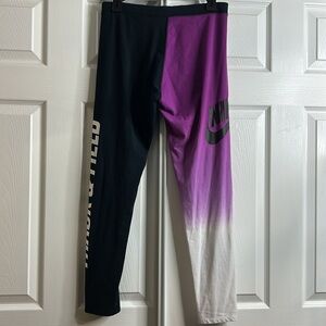 Nike leggings Features bold purple, black, and white design. Ideal for active wear.