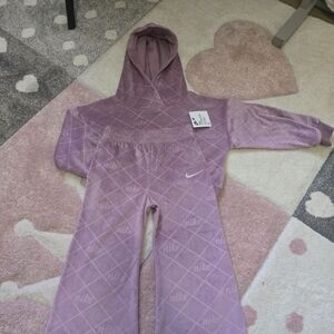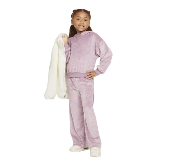 This is a Nike toddler girls' 2-piece velour set in plum dust. New with tags