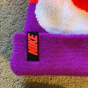 Keep your child warm and stylish with this Nike beanie and gloves set. Featuring vibrant orange and purple colors, this set is perfect for chilly days. This is pre-owned and clean. Please view all photos. Non smoking non pet home.