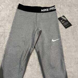 Sleek gray leggings with Nike Pro waistband. Ideal for active play.