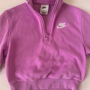 Soft and cozy joggers. Perfect for active play. Stylish Nike logo detail. Straight leg pant, with drawstring and zip up quarter zip sweater.