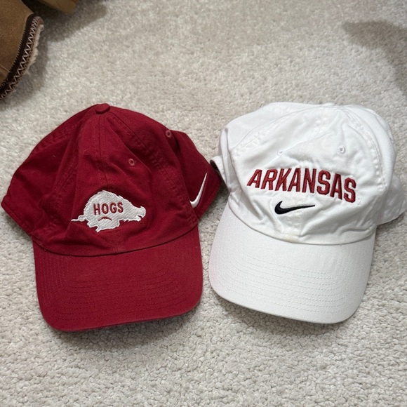 Bold red and crisp white caps with Arkansas theme. Perfect for young sports fans.