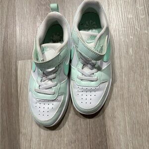 Chic Nike sneakers for kids. Mint and white design. Ideal for play and style.