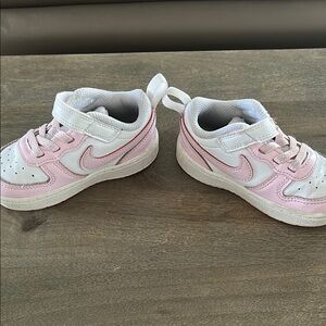 Charming Nike sneakers for kids. Pink and white design. Ideal for play and comfort.