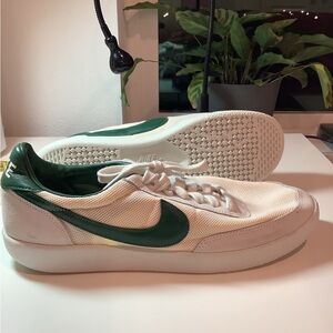 Chic Nike sneakers for kids. White base with green accents. Ideal for daily adventures.