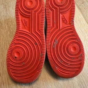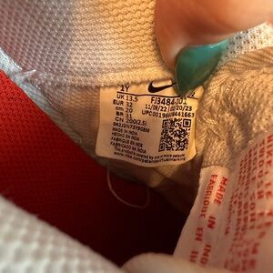 Stylish white sneakers with vibrant red details. Perfect for active play.
