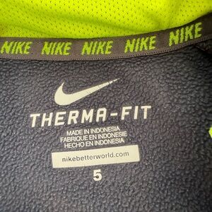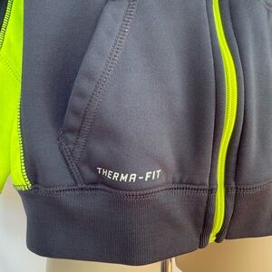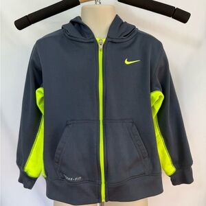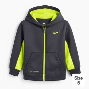 Nike Kids Therma-FIT Full Zip Hoodie – Gray & Neon Yellow (Size 5)