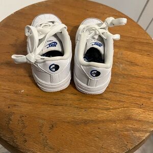 Classic white Nike sneakers for kids. Comfortable and stylish. Perfect for daily adventures.