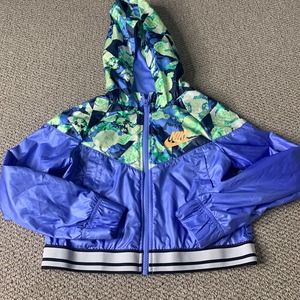 Nike Kids jacket & Shorts Set Size Small Blue Floral Windrunner 2-Peice NWT