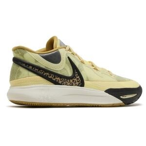 The Nike Men's Kyrie 8 "Citron Tint Leopard" is a performance basketball shoe featuring a vibrant citron tint (yellow) colorway with leopard print accents and wheat gold details. Designed with a durable and breathable synthetic upper, this model is part of Kyrie Irving's signature line, known for quality and athletic performance. It incorporates cushioning and a forefoot Air Zoom Strobel unit for enhanced performance, along with a secure fit and supportive design.